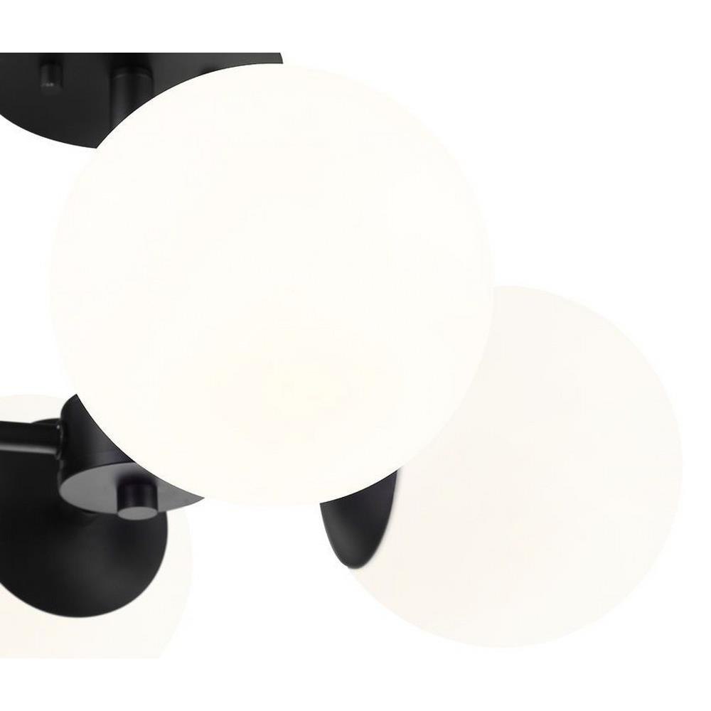 Send visual cues upward to capture a whimsical, charming look in an entertainment space. Modern styling with strong industrial elements forms a delightful island/billiard light that works in a casual kitchen as well. A linear matte black finish steel frame sets the stage for a festive arrangement of eleven matte opal glass globe bulbs to create mood-lifting ambiance that lends a hint of space-age personality to this enticing light.