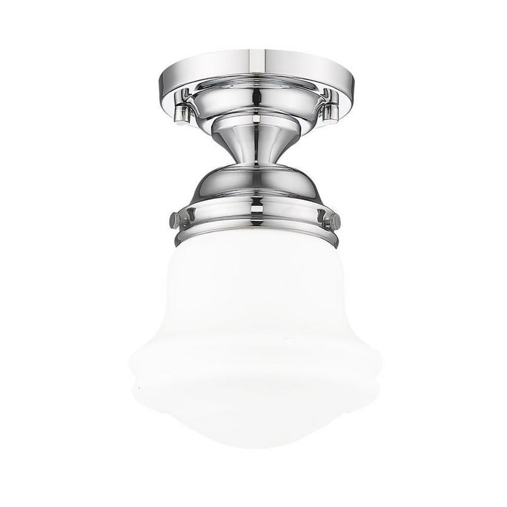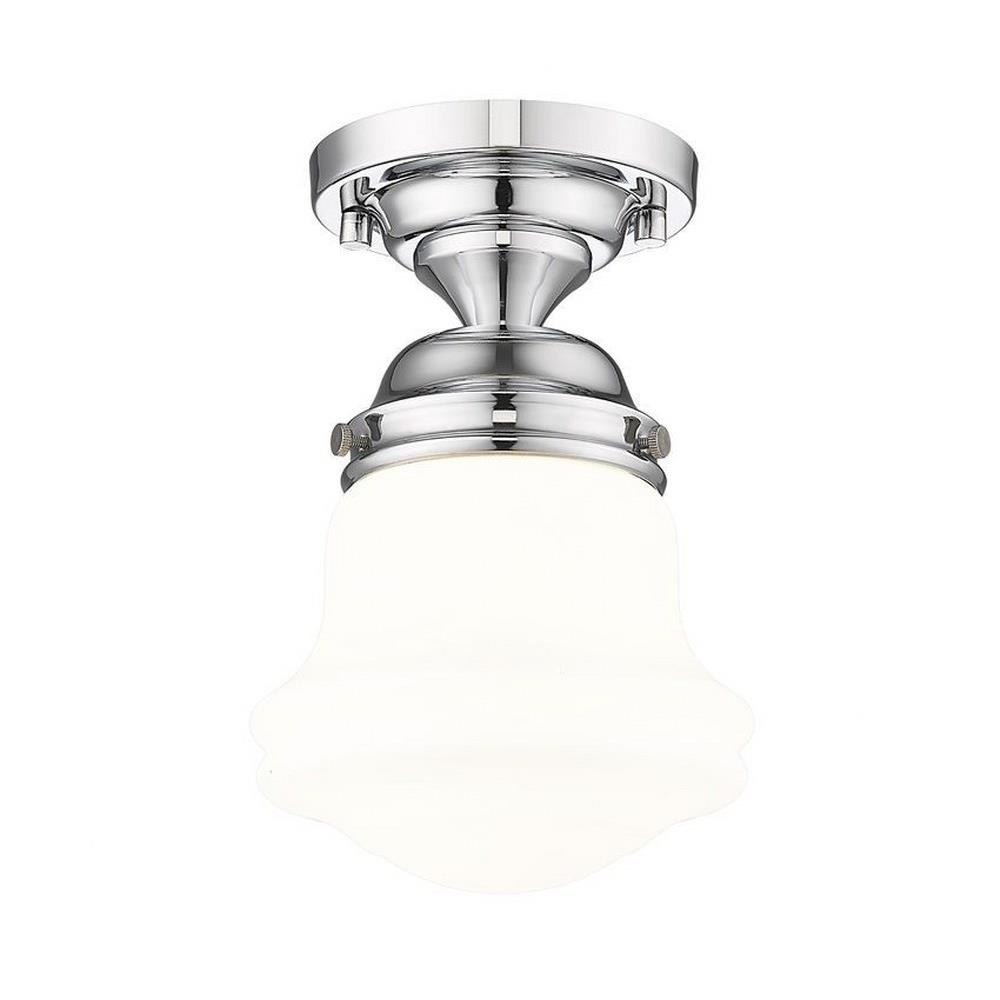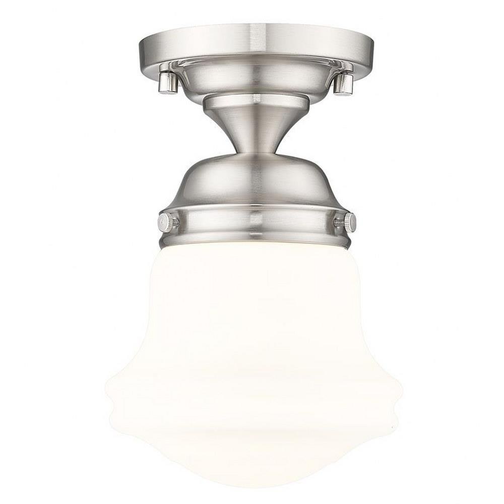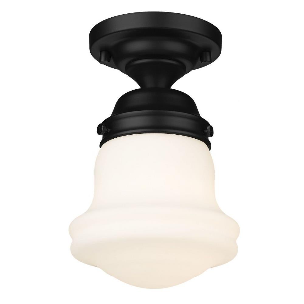 Elevate sophisticated classical interiors with the refined contoured silhouette and smooth surfaces of this petite restoration style flush mount. A small but powerful glow emits from the matte opal glass bell shade tucked within a heritage brass steel mount detailed with rivet accents that lend an industrial schoolhouse-inspired aesthetic and vintage flair. This classical single light flush mount offers a serene ambiance, illuminating foyers, hallways and compact spaces, as it offers a warm metallic touch.