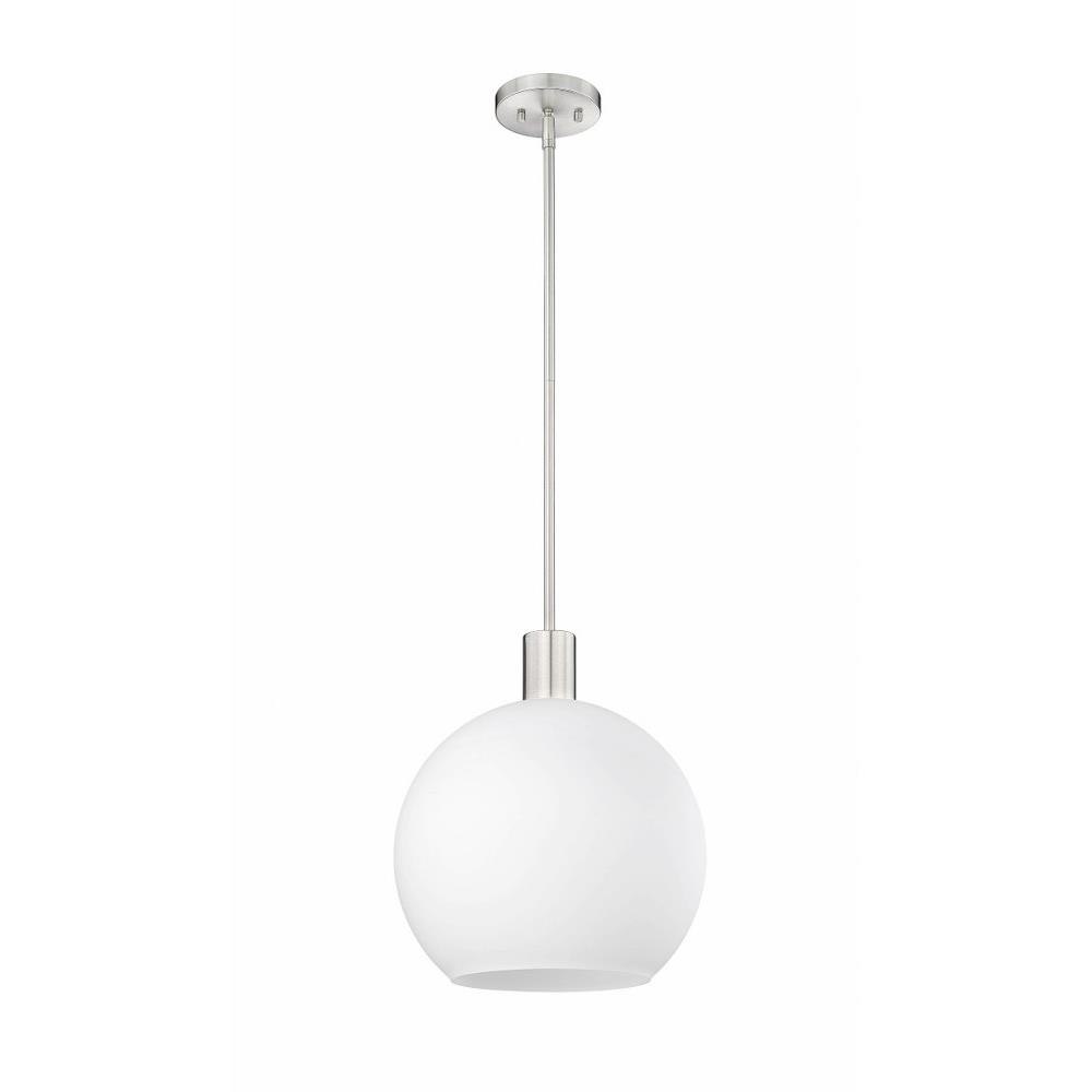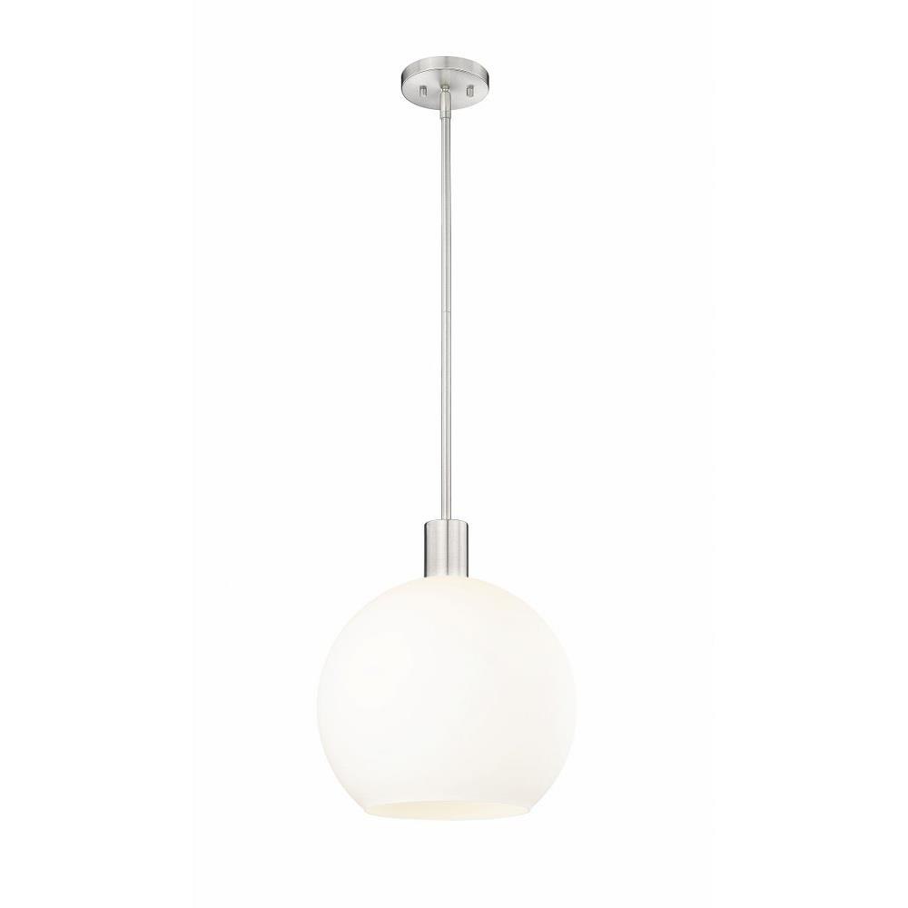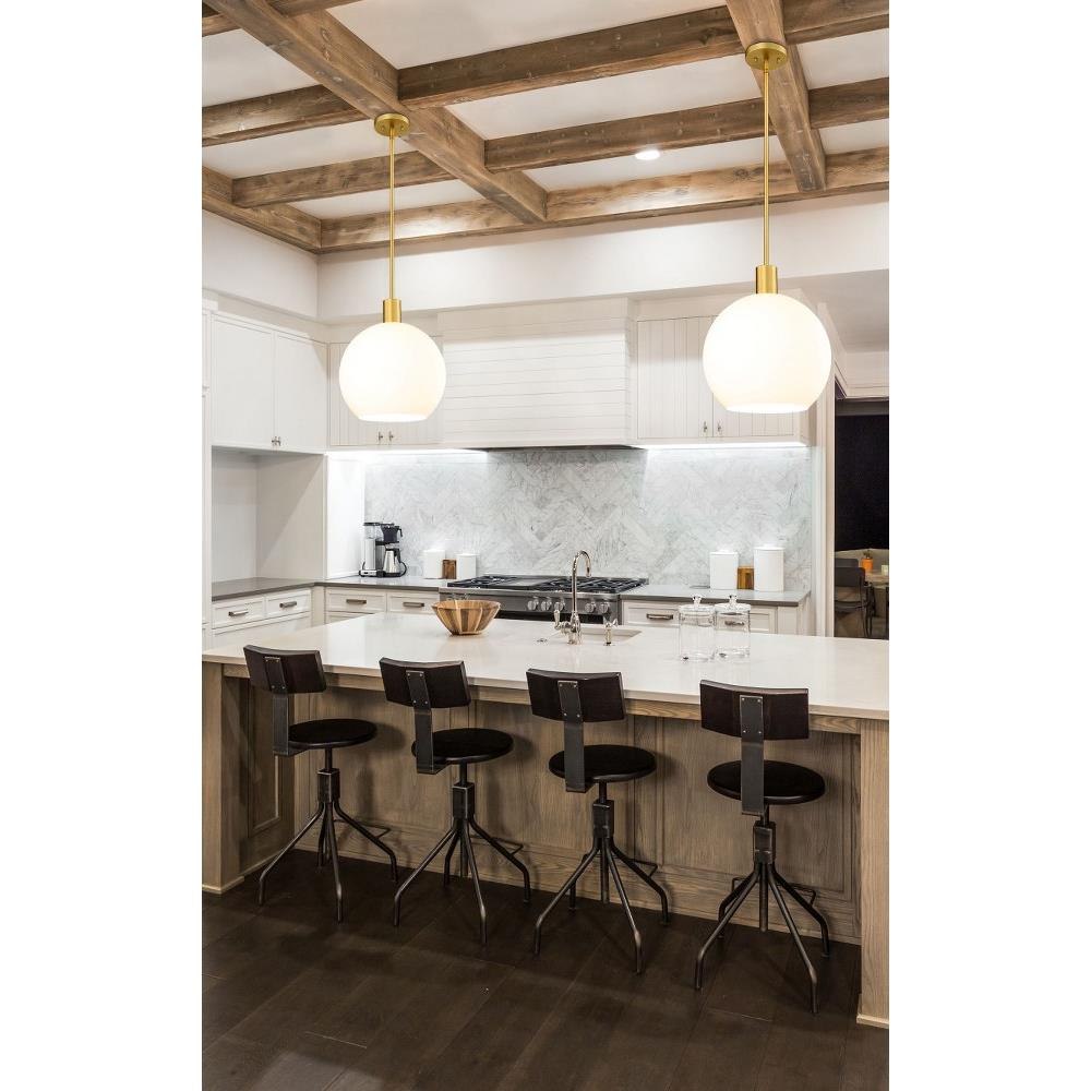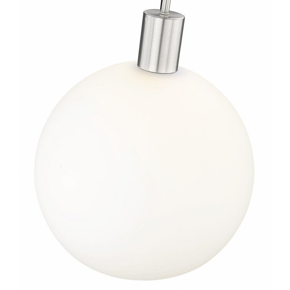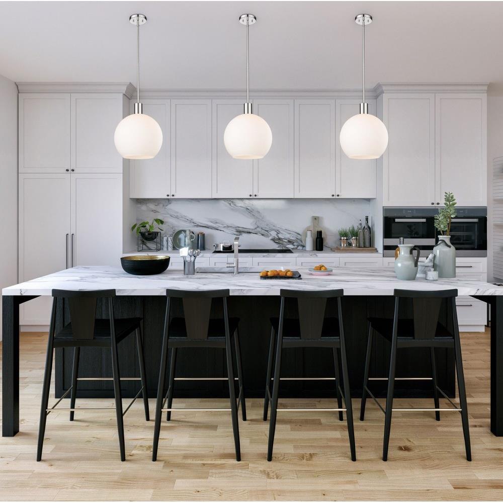 Create a Mid-Century Modern flair to kitchen islands, countertops and breakfast nooks with this mesmerizing sleek contemporary pendant. Designed with a brilliant white glass globe shade, this elegant pendant brightens interiors and lends a gorgeous glowing ambiance throughout the space. The soothing orb-like pendant also features a slender brushed nickel steel rod and matching flush plate mount, offering a minimalist aesthetic and versatility to all types of home interiors.