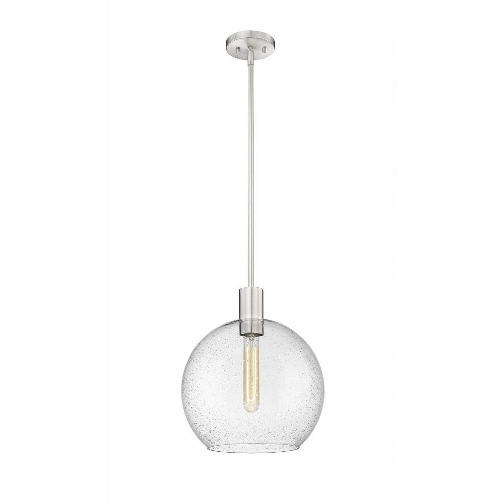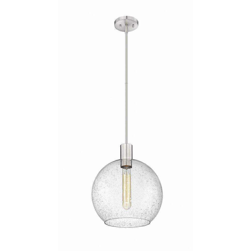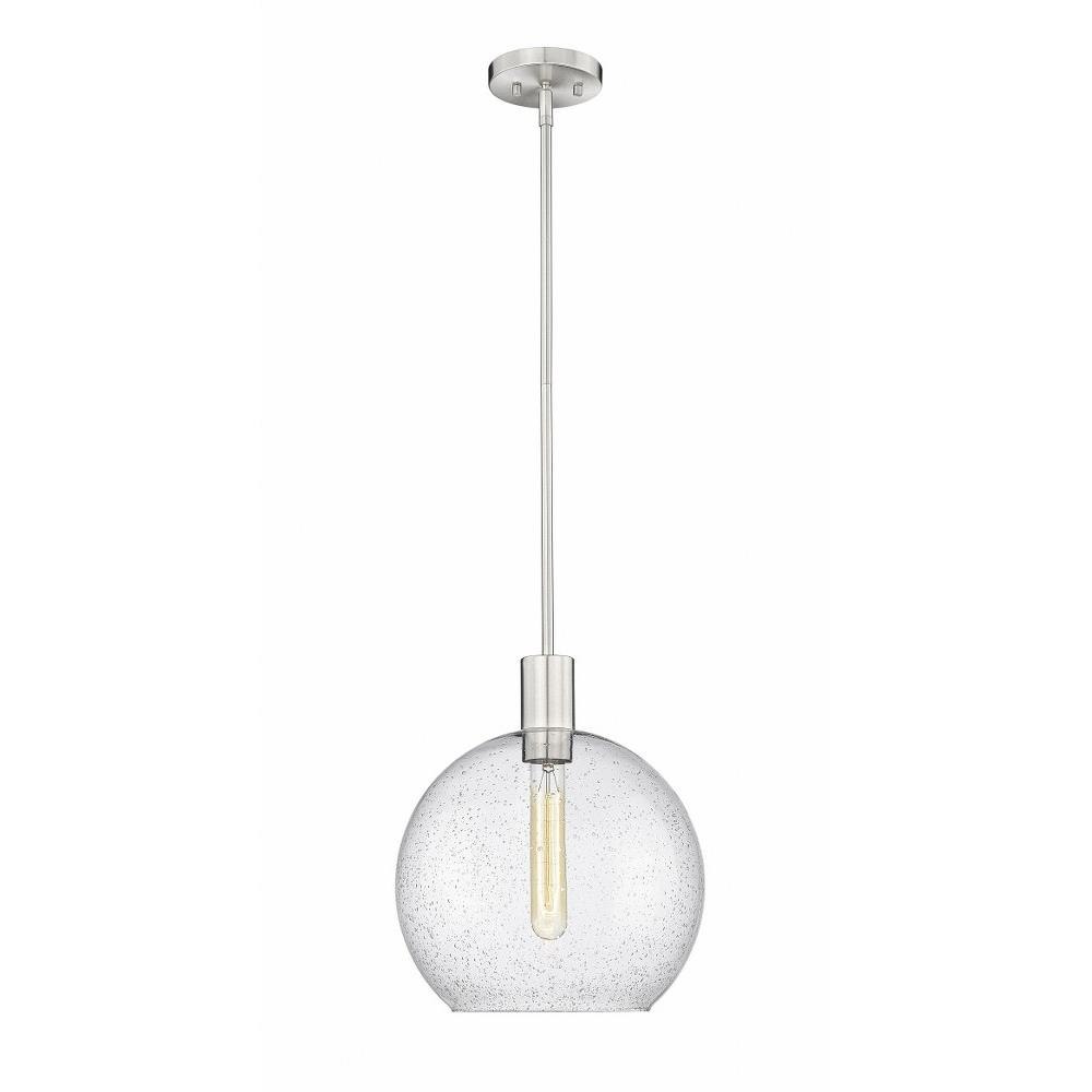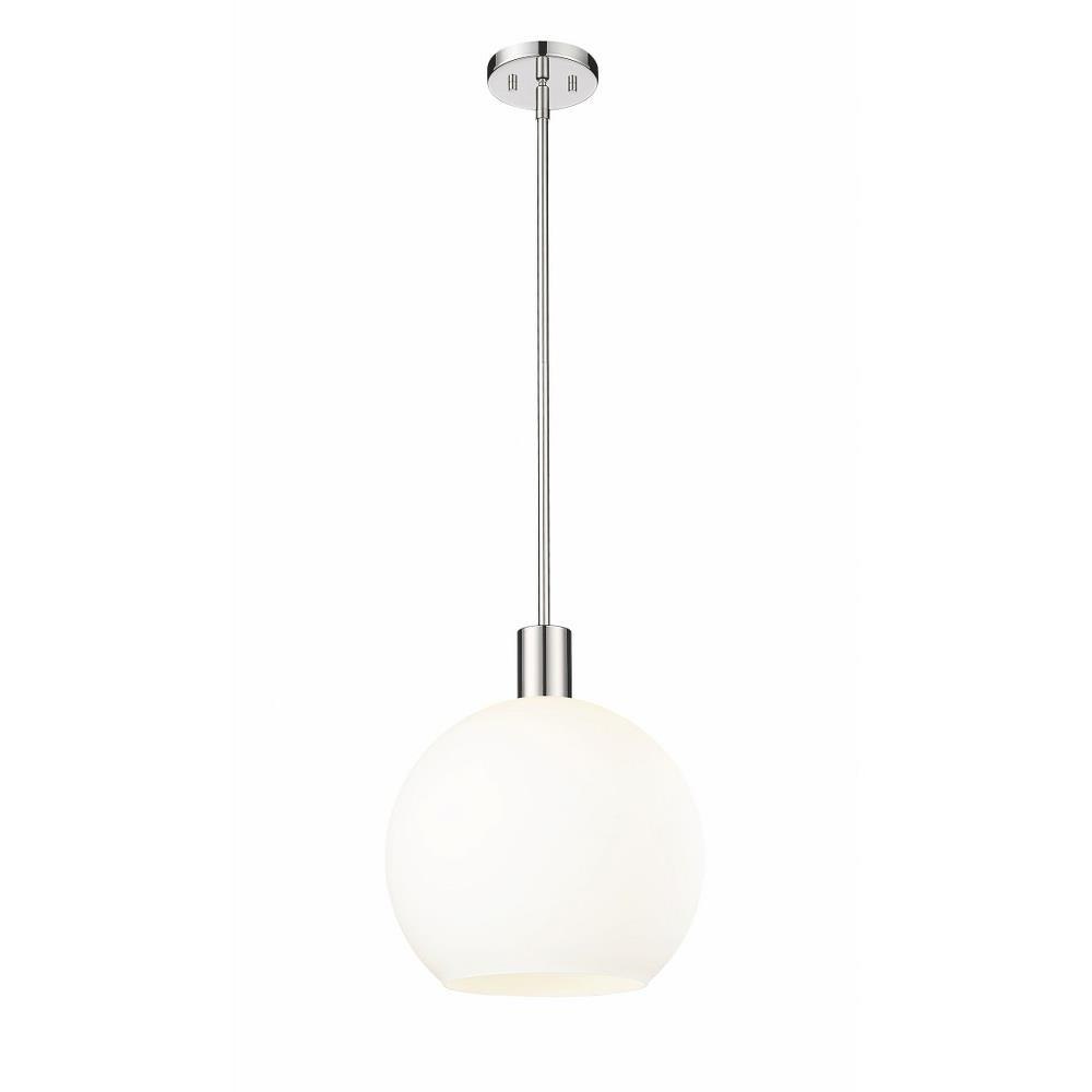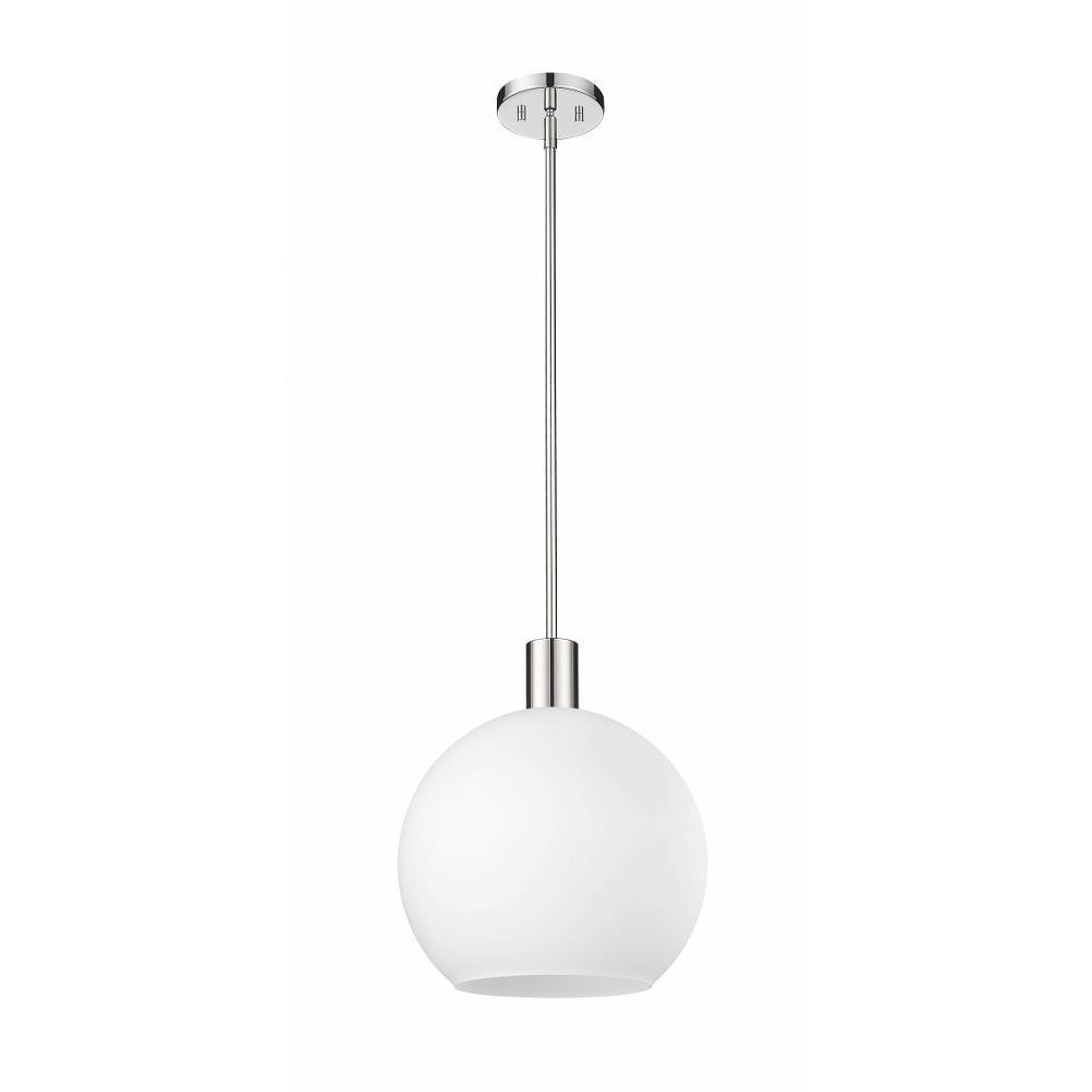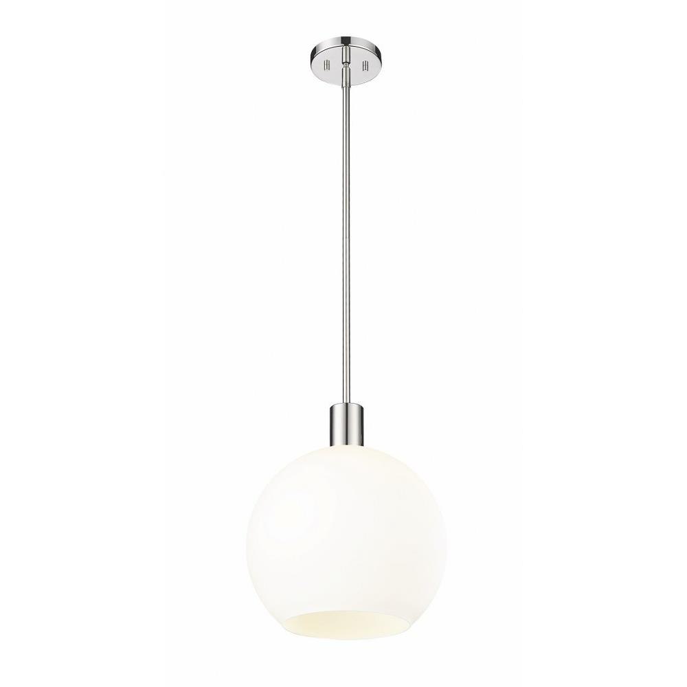 Create a Mid-Century Modern flair to kitchen islands, countertops and breakfast nooks with this mesmerizing sleek contemporary pendant. Designed with a brilliant white glass globe shade, this elegant pendant brightens interiors and lends a gorgeous glowing ambiance throughout the space. The soothing orb-like pendant also features a slender brushed nickel steel rod and matching flush plate mount, offering a minimalist aesthetic and versatility to all types of home interiors.