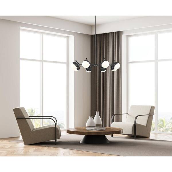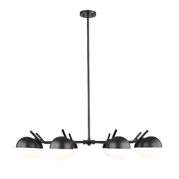 Realm Sphere 8 Light Matte Black Chandelier with Matte Opal Glass Shades for Indoor Use with No Bulbs Included