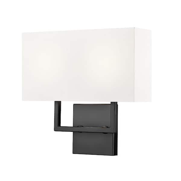 Saxon 12 inch Matte Black 2 Light Wall Sconce with White Fabric Shade
