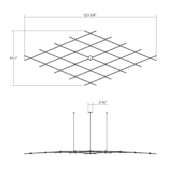 Aquarius is "The Great One" it is a broad constellation of uniform brightness across a vast space of the sky. Expansive, covering a large range of space, Aquarius is the latest innovative design configuration of our constellation architectural lighting system. A stunning, two-dimensional, grid-like structure, Aquarius is comprised of LED light engine hubs and connectors. The span of Aquarius can be suspended to take on a natural celestial-like curve of its weight depending on the placement of its ceiling hangers.