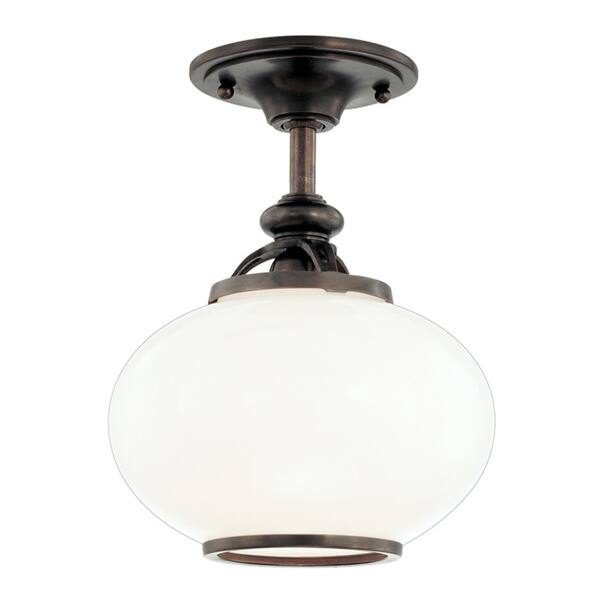 Gaslights required airtight connections and durable glasswork, making it necessary to construct fixtures according to exacting standards. We still apply these rigorous design principles to our 21st century electric fixtures. Canton's pipe tubing and opal glass displays premium restoration craftsmanship. Cast metal rings at each end of the shade emphasize Canton's signature oblong shape. Features socket ring shade attachment. Canopy dimensions are 5.5 inches wide.
