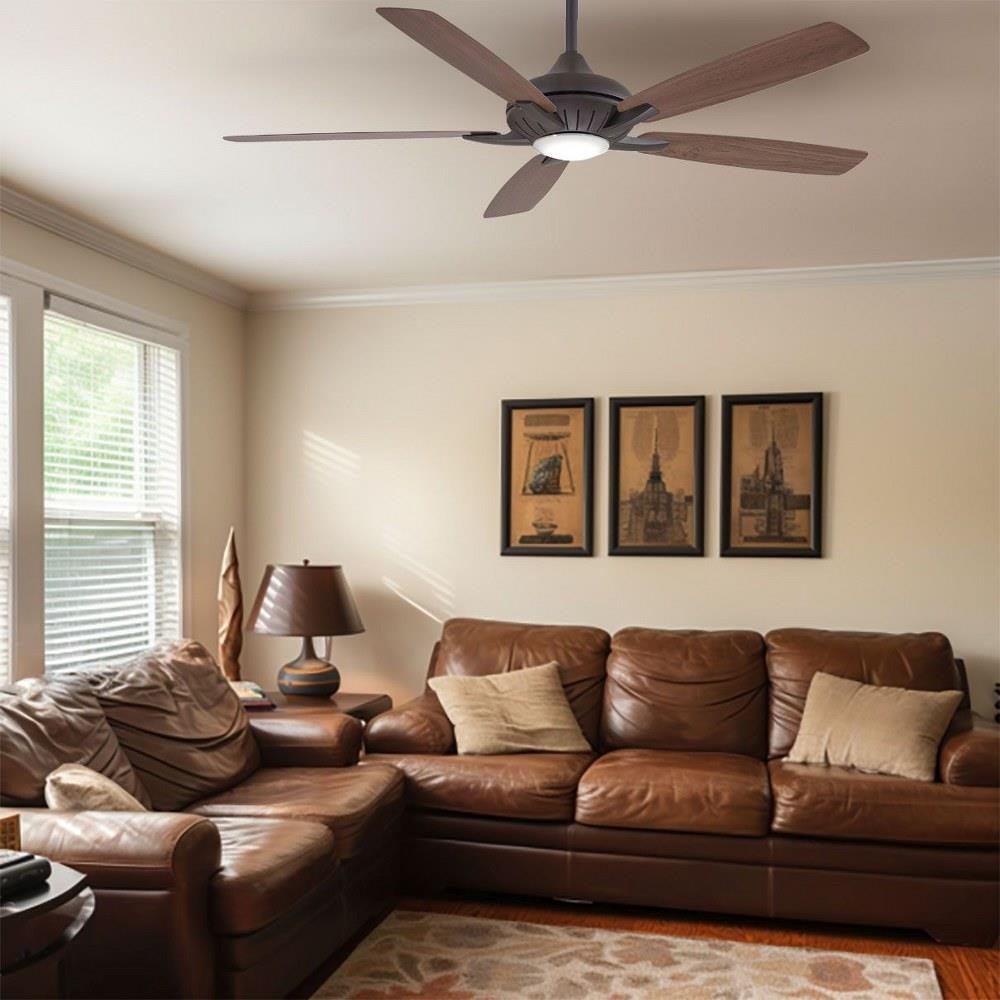 60" 5-Blade LED Ceiling Fan in a Brushed Nickel Finish with Reversible Medium Maple and Dark Walnut Finish Blades with Etched Lens