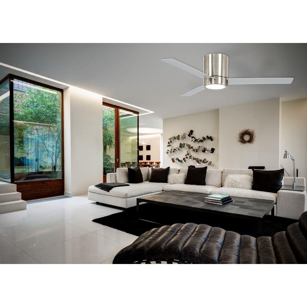 Introducing the Roto Flush - a 52-inch wide 3 Blade Hugger Ceiling Fan with an integrated light kit from the Roto Flush collection. Crafted from durable brass and metal, this fan combines functionality with sleek design. It features a single LED bulb, providing efficient lighting while enhancing your space's ambiance. Ideal for low ceilings, the Roto Flush offers a stylish solution for cooling and illumination, making it a perfect addition to any room.