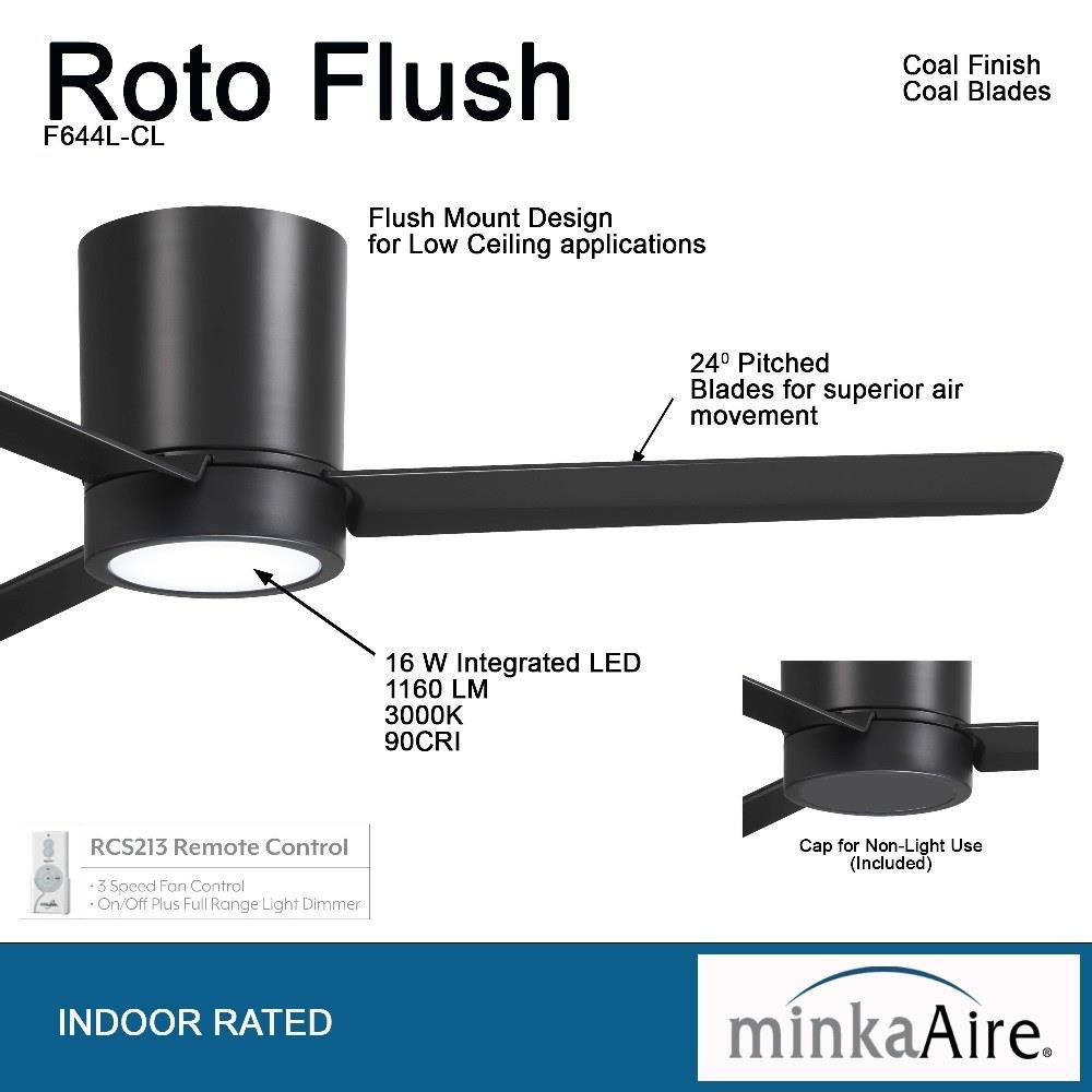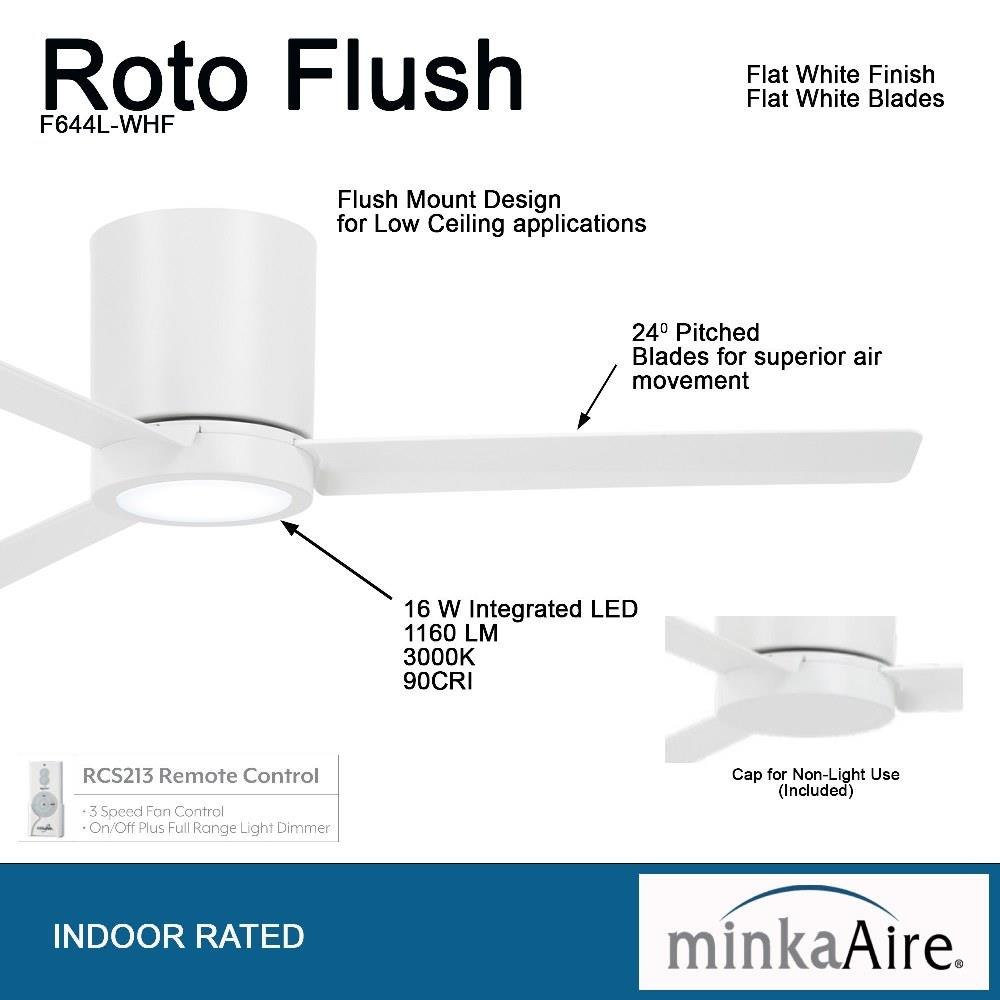 Minka Aire Fans - F644L-WHF - Roto Flush - 3 Blade Hugger Ceiling Fan with Light Kit-52 Inches Wide