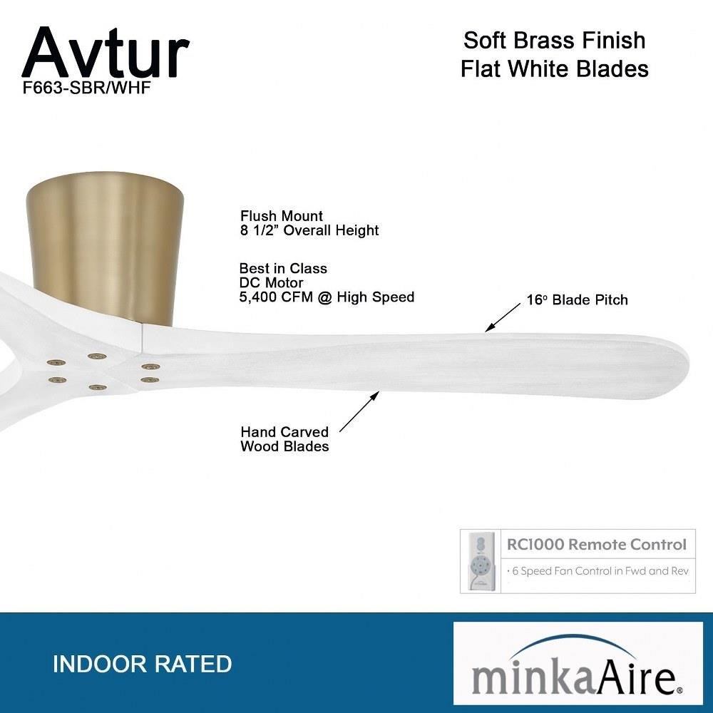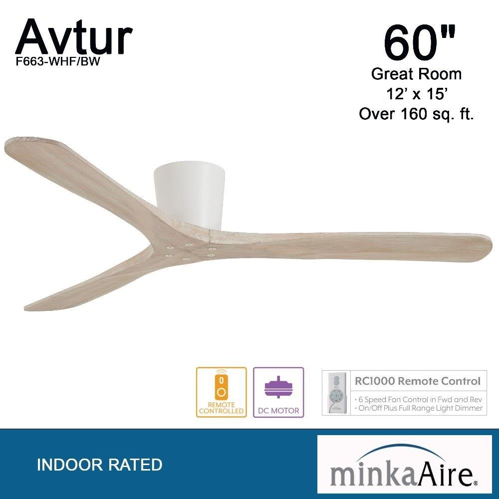 Minka Aire Fans - F663-WHF/BW - Avtur - 3 Blade Flush Mount Ceiling Fan-8.1 Inches Tall and 60 Inches Wide