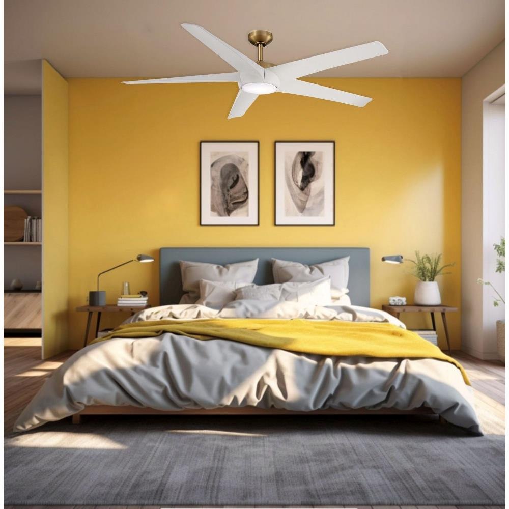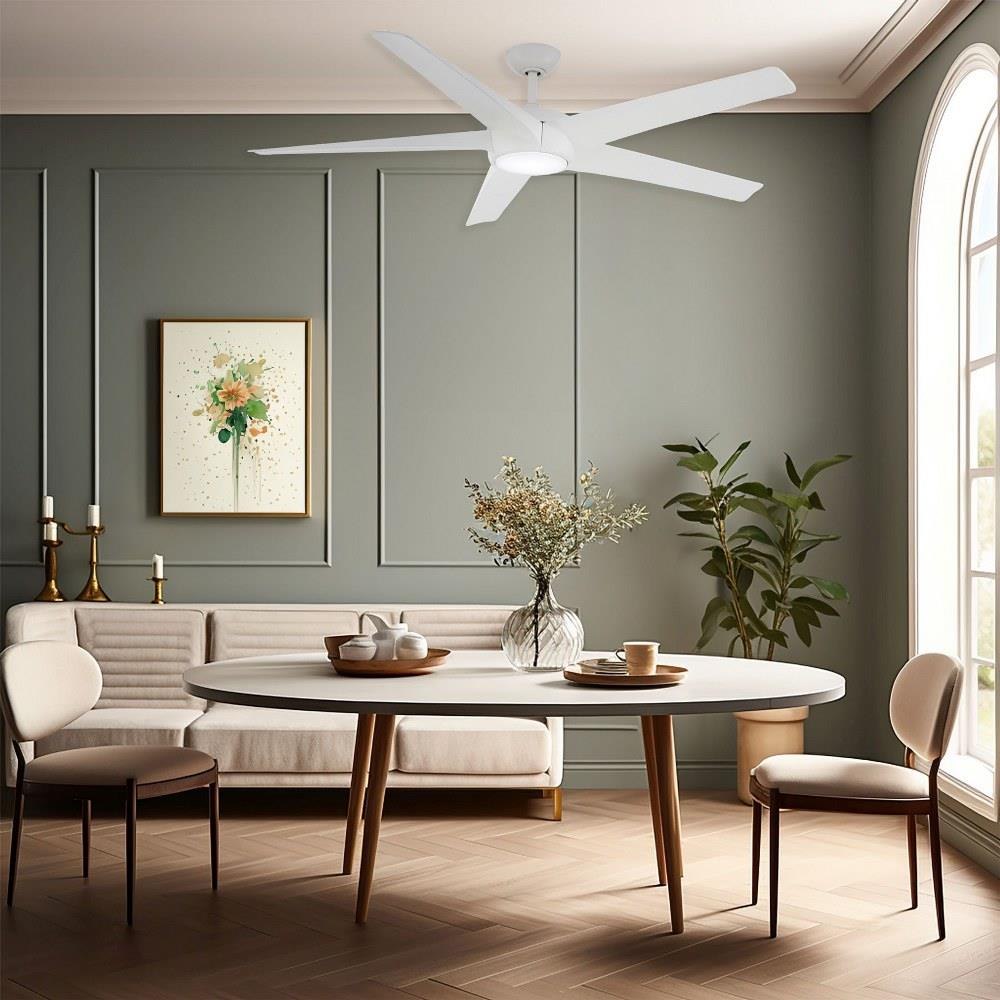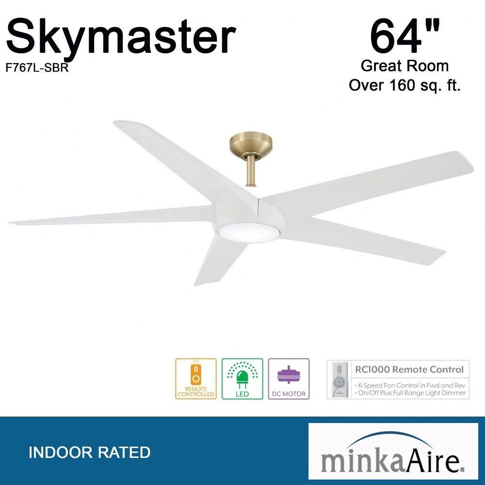 Introducing the Skymaster 5 Blade Ceiling Fan, a perfect blend of style and functionality. Standing at 13.65 inches tall and spanning 65 inches wide, this fan is designed to enhance any space. Crafted from durable ABS and metal, it ensures longevity and reliability. The integrated LED lighting provides efficient illumination while maintaining a sleek aesthetic. Elevate your indoor environment with the Skymaster fan, where modern design meets exceptional performance.